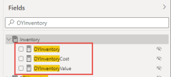 3. In the fields search box, type OYInventory and edit the top 3 calculations with the formulas below: